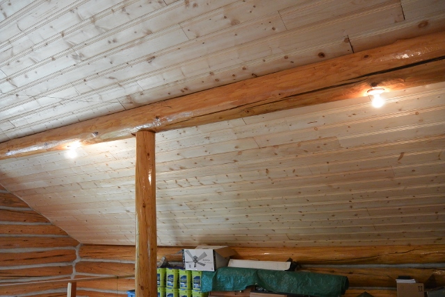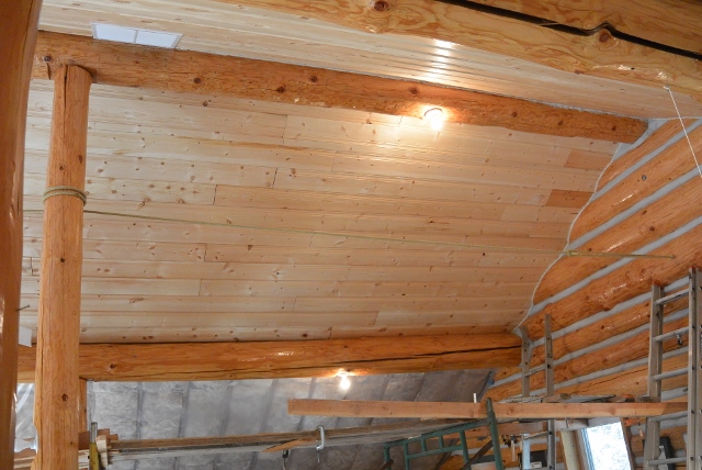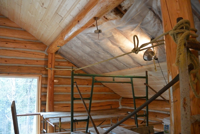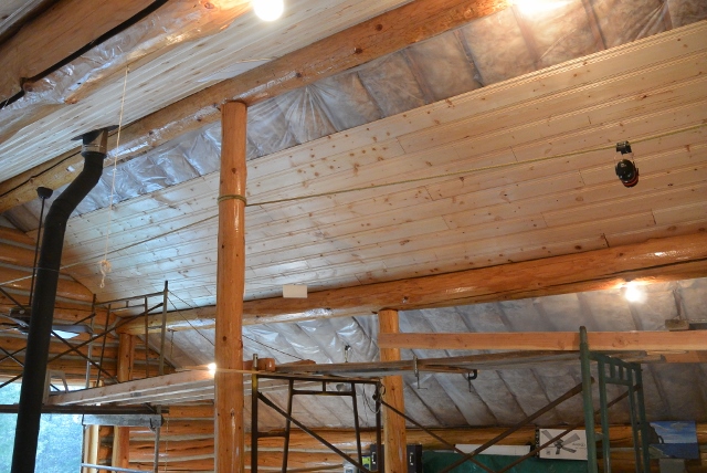 The objectives for 2015 were to finish the installation of the ceiling boards, to backfill the open water line trench, to finish the logging activity, and to make some progress finishing the exterior log staircases. The ceiling boards and the waterline and trench were completed. Half of the logging was completed, and all the final treads were installed on the front porch staircase. It was a successful year.