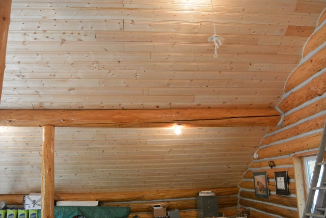 1/23/15 The ceiling boards are closing in on the ridgepole.