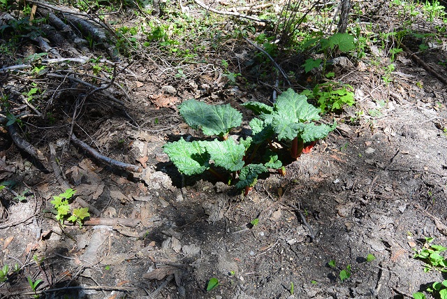 4/26/16 This is a picture of the rhubarb plant I transplanted last fall. This is the second week it has been out from under the snow and it is growing like gangbusters.