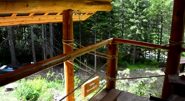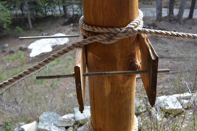 5/4/17 The small end of the rail is fastened to a projecting wall log with two screws.