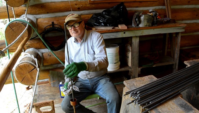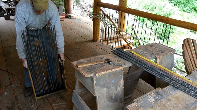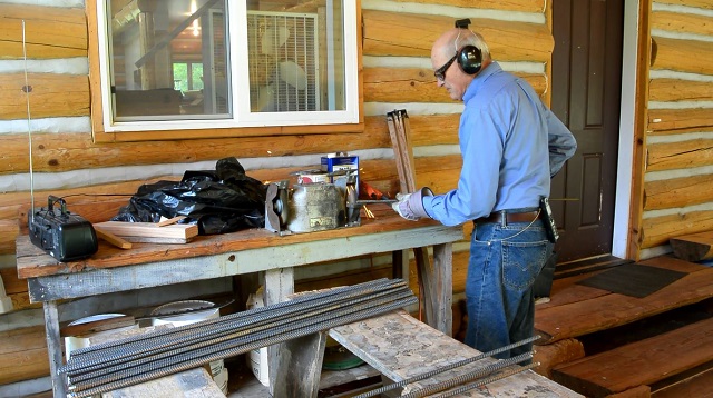 5/25/17 Here I am using Dr. Dick's rebar cutter to cut the balusters to length.