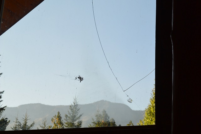 9/28/17 The mystery of the broken upper window in the living room is solved, at least there is a strong theory. The second crack, the short one near the bottom angling up to the right, appeared along with the evidence of bird feathers still stuck to the window and the body of a headless, dead grouse on the roadway below. It is pretty clear that the window was broken as a result of bird strikes. I'll begin thinking of ways of mitigating that problem.