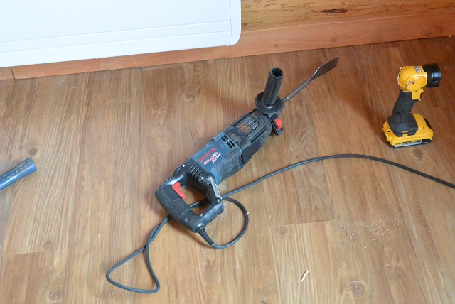 10/19/17 This is the bulldog roto-hammer equipped with a wood chisel bit that I use to chisel out the notch in the wall log after the kerf is cut.