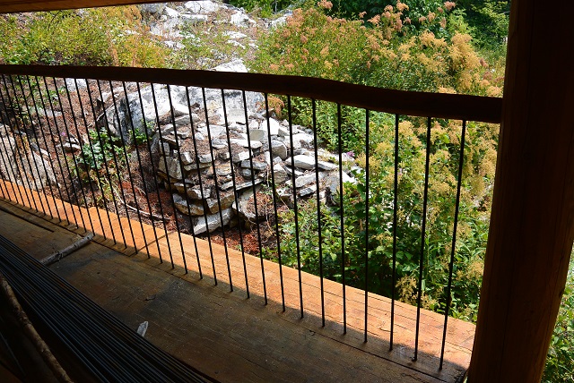 10/25/18 Some progress was made on the back porch rail. The three rails are fabricated and stained. The first half of the balusters are installed in the lower rail.