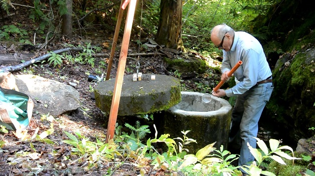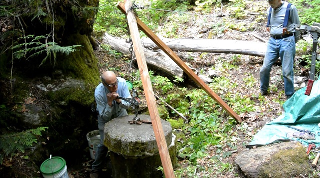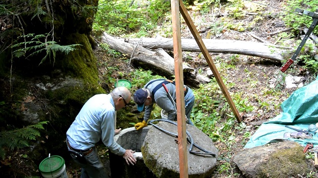 9/6/18 Paul and Earl are looking down inside the open springbox prior to dumping the bentonite in.