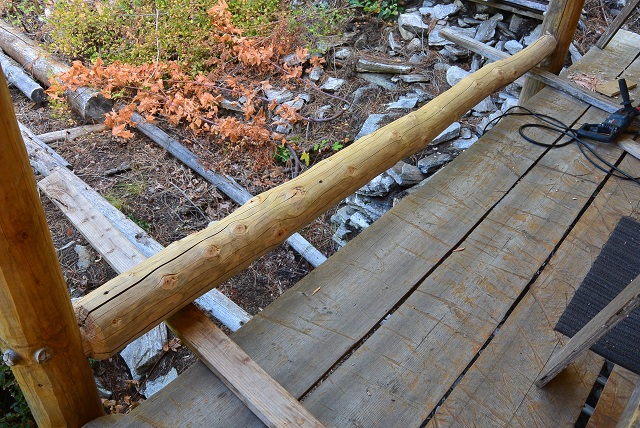 9/20/18 The lower rail for the back porch railing is fabricated and held in place by the mortise and tenon joints on either end.