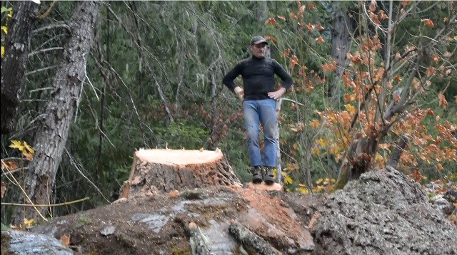 10/25/18 Robert is standing on the pine stump. The fir stump is to the left of him.