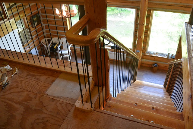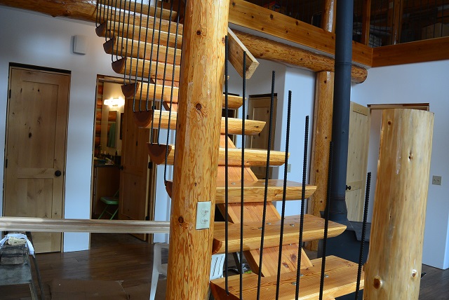 2/4/20 These 9 balusters are anchored in the kitchen ceiling. The rest of the balusters must wait until the railings arrive from the manufacturer because the rest will be anchored in the railings.