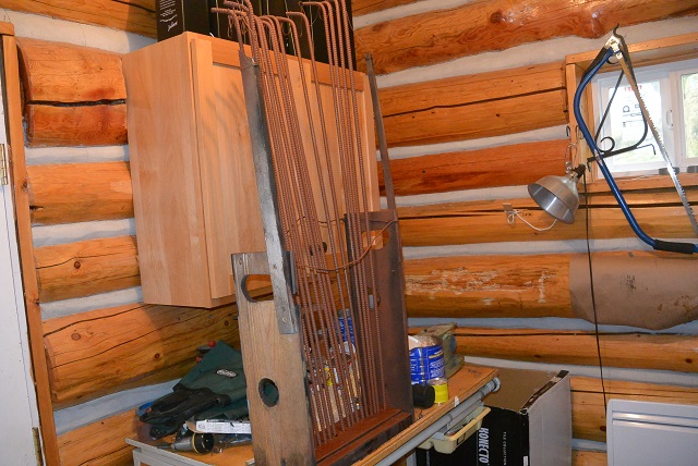 2/16/20 Here is a view of the balusters from the other side. The rails on the sawhorses are awaiting another coat of varnish.