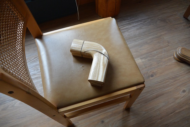 3/29/20 Here, after many hours of smoothing the inside of the cut, the piece fits a lot better. It still needs more work though.