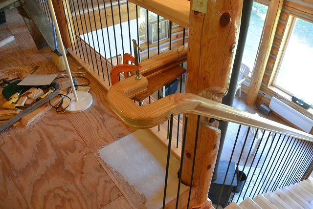 5/4/20 Here are the final finished lower terminations of the two rails at the newel posts.