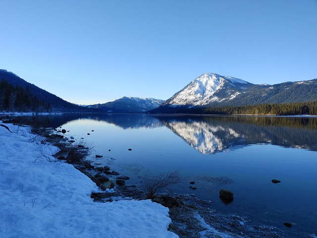 1/23/21 This is the view Ellen and I were rewarded with after snowshoeing from the Kahler Glen Sno-Park to Lake Wenatchee. We spent the night at Camp Serendipity when we got back.