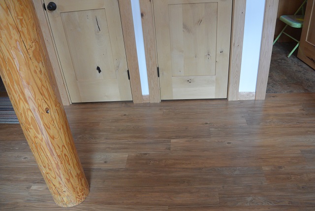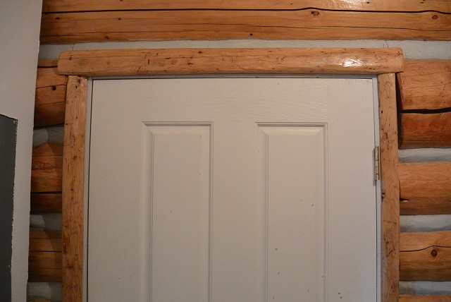 1/5/21 The first of the interior door casings has been completed. I took Bill's advice and used natural materials for the casings on the exterior doors which interface with log walls so they match nicely. This is the front door.