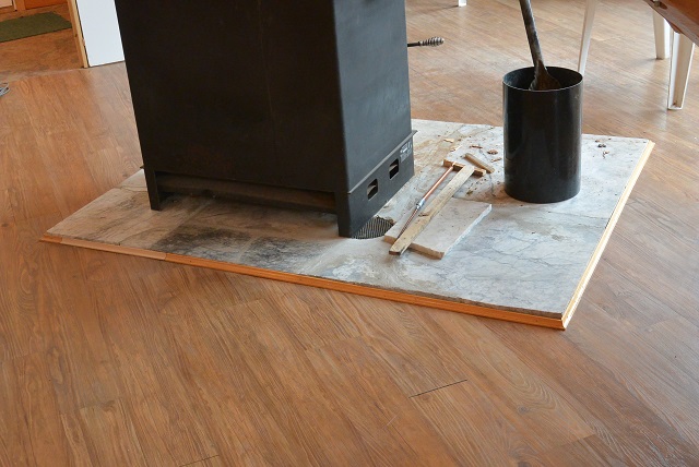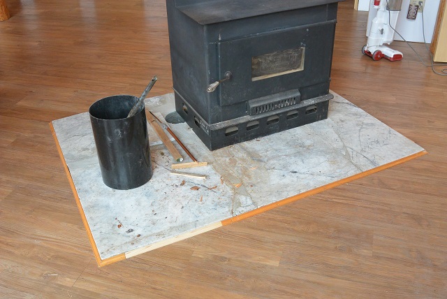 2/12/21 The trim molding around the hearth was removed when the stove had to be moved. It was not replaced right away because the flooring had to go under it. After that, it was not replaced because the priority was too low. Now, it has bubbled up in priority and this week I replaced the old trim and made two extensions to accommodate the hearth enlargement. Those extensions need to be varnished but I took a picture of them anyway. I'll varnish them when I varnish the next casing boards. This is a shot of the hearth from the back...