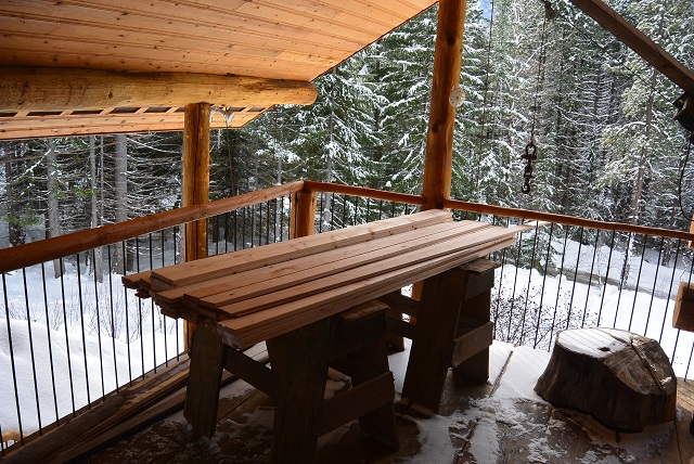 2/16/21 This is the lumber for the remaining door casings and baseboards. I carried it up from the truck in nine trips. Each trip meant climbing 56 stairsteps and going over a couple rather steep snow trails. That's a total of 504 steps. Not bad for an old man.