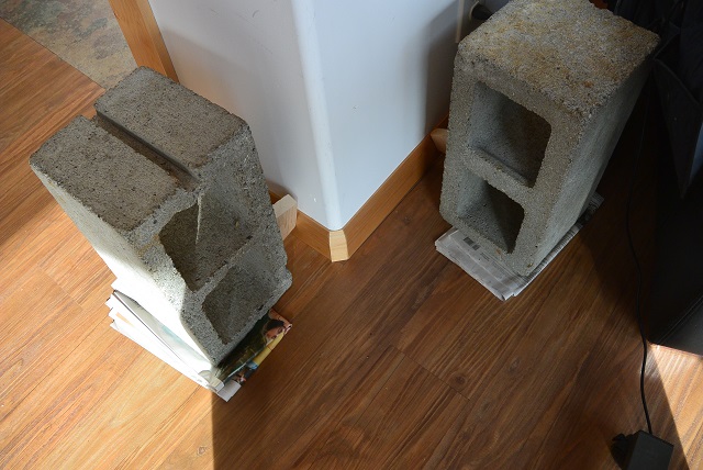 4/21/21 Here's a newly installed bullnose showing the concrete blocks used to clamp it to the wall while the glue sets up.