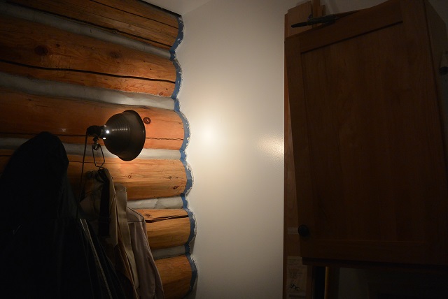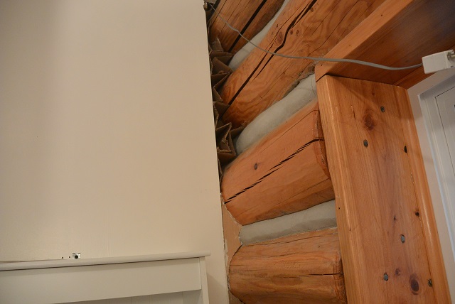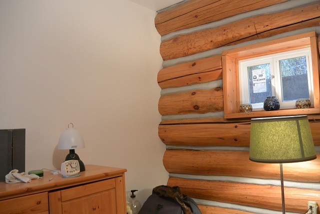 11/3/21 Here's a picture of the finished seam between the bedroom/bathroom wall and the log wall.