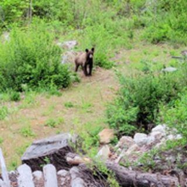 5/15/24 I was surprised to see this little bear out the kitchen window. He stood there long enough for me to get this grainy picture of him before he walked off behind the privy.