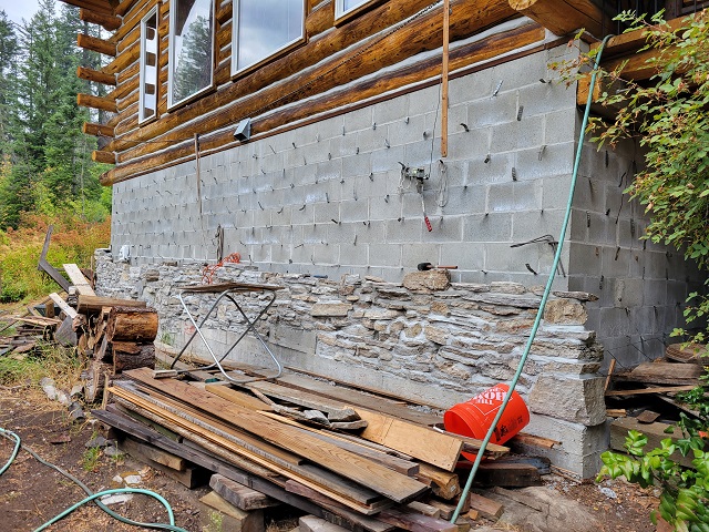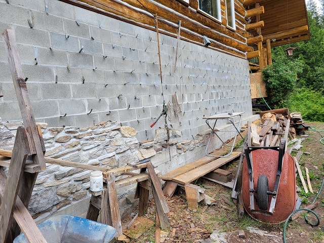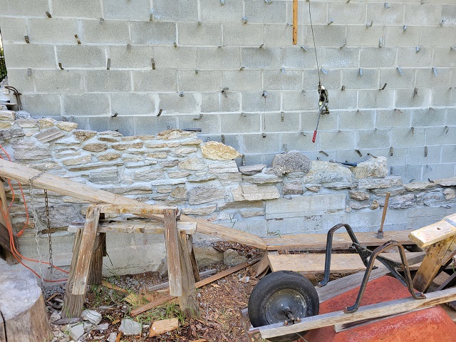 5/31/24 This picture shows the new addition to the wall after 47 batches of mortar.