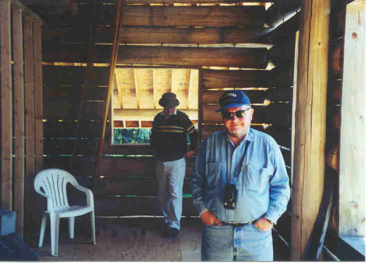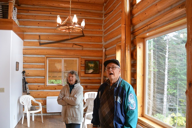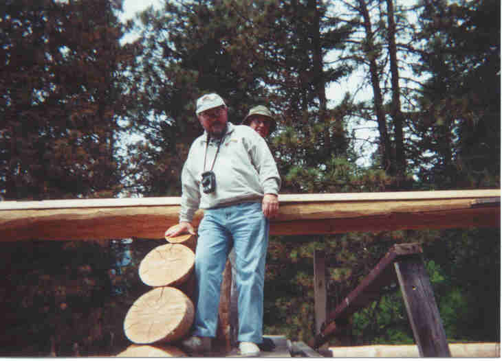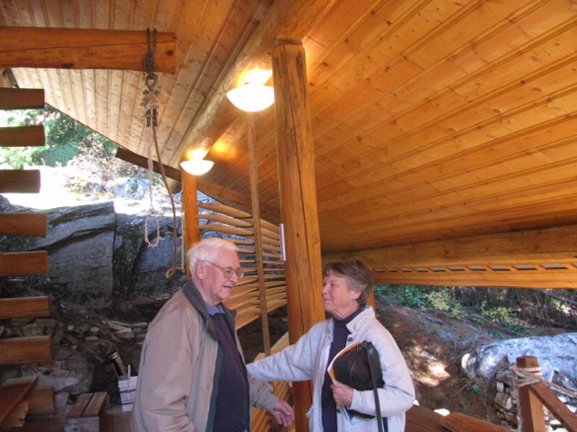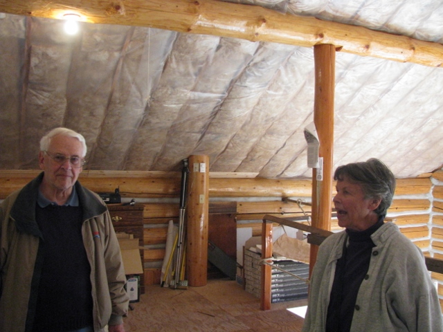 10/23/13 Bob and Pat in the loft with the beginning of the first course of interior ceiling boards visible in the background.