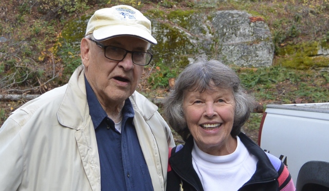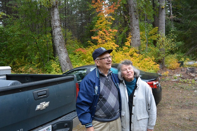 10/10/17 Bob and Pat looking at leaves at Camp Serendipity.
