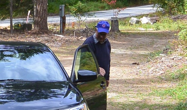 9/15/15 Bob arriving at Camp Serendipity after a lunch at the 59'er Diner.