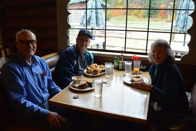 10/10/17 Paul, Bob, and Pat having lunch in The Squirrel Tree.