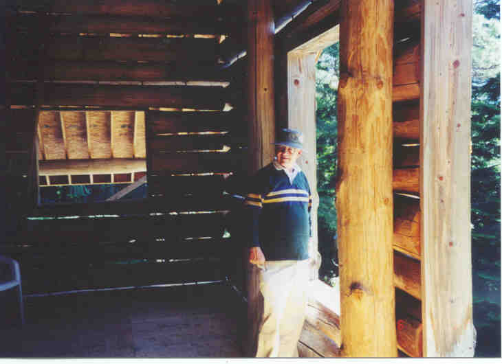 10/23/13 Bob and Pat on the front porch with varnished ceiling boards in the drying rack.