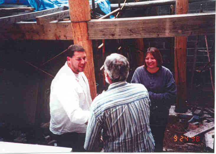 8/25/08 Dave, Bill, Jim, and John and the forms for the concrete staircase.