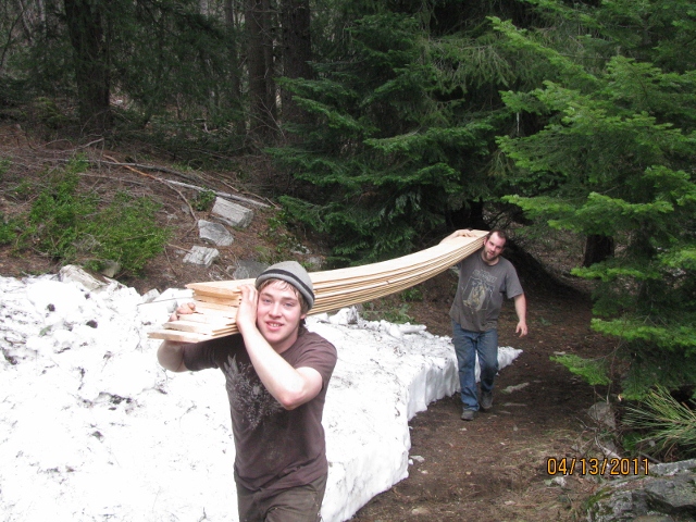 4/13/11 Brandon on his way back down to get another load of boards.