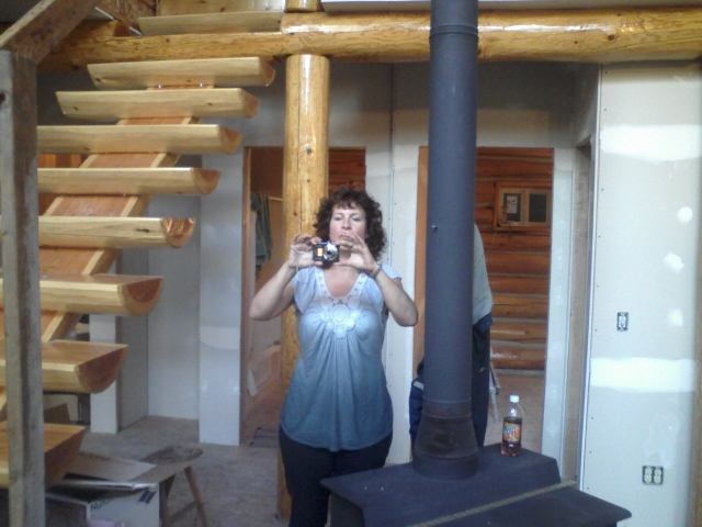 7/26/11 Marilyn in the cabin ready to take a picture of Paul, Marielle, Kevin, Alex, and Curtis.