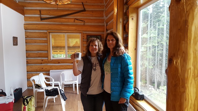 5/28/16 Marilyn, with her Camp Serendipity mug, and Ellen the morning after our hike to Eightmile Lake.