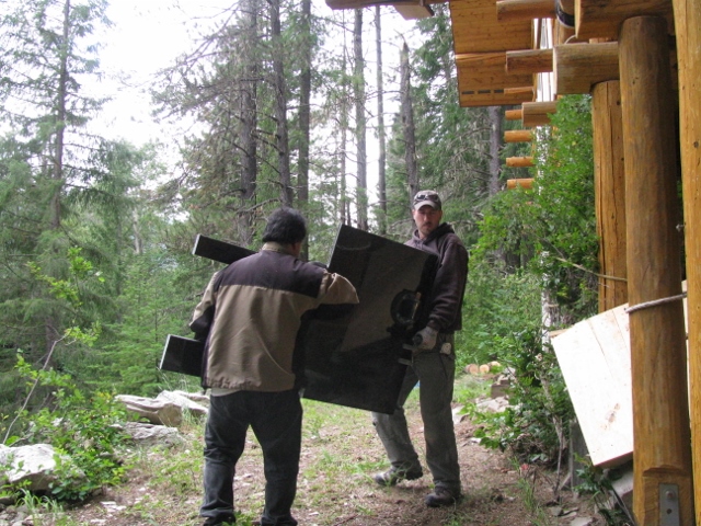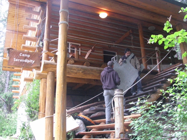 6/19/13 Here Dave and Salvatori are preparing to carry one of the stone slabs up the stairs.