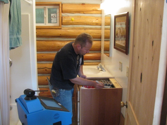 6/12/10 Here Bob is measuring the bathroom vanity for the countertop. You can get a better view of his computer in this picture.