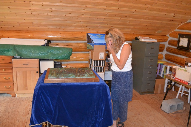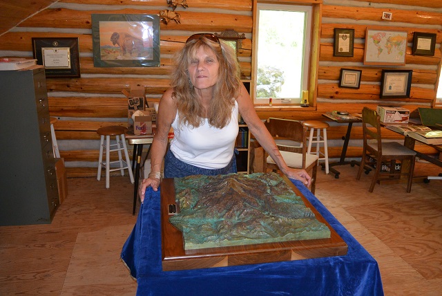 9/7/19 - Patty studying the bronze Mt. Ranier model.