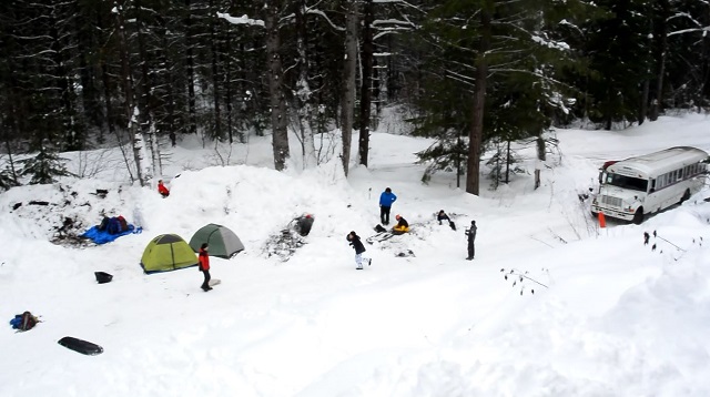1/21/17 The Troop 100 bus and some of the boys beginning to set up camp and have fun.