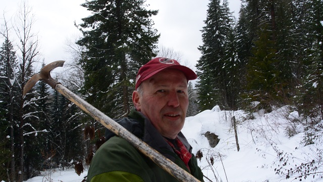 1/21/17 Bill on his way up to the camp area up by the privy.
