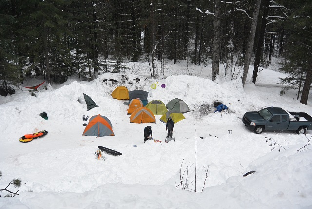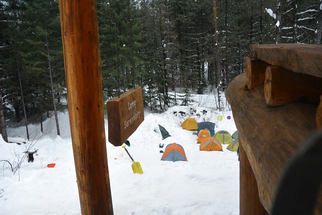 Several of the boys slept in snow caves, many of them for the first time. One boy, who got sick, slept in the cabin. A few adults slept on the front porch, and the rest of the boys and adults, except for Paul, slept in tents on the snow. Paul slept in the cabin.